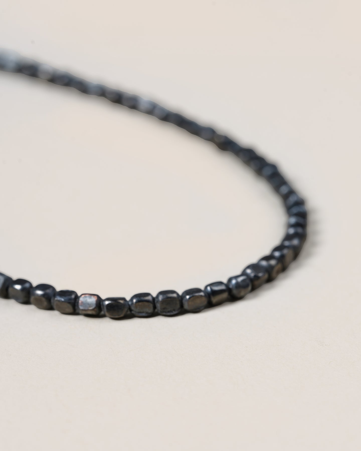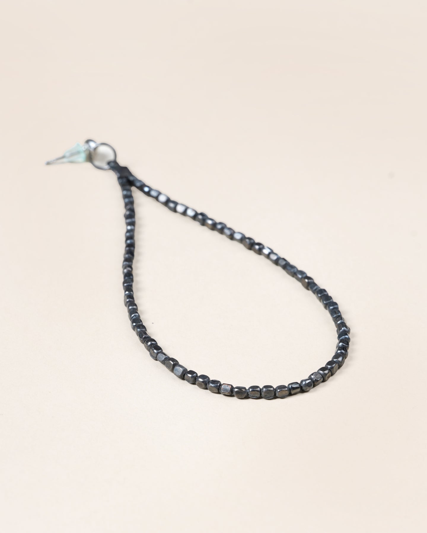 Care: 1. Keep away from water, perfume, and other liquids as moisture can cause brass to tarnish and weaken the thread. 2. Gently wipe brass parts with a soft, dry cloth after each use to remove sweat and oils. If tarnish develops, lightly polish with a soft cloth—avoid harsh cleaners as they may damage the thread. 3. Do not pull or stretch the thread. Keep away from sharp objects that may cause fraying. 4. Store jewellery flat in a soft pouch or box, away from humidity and direct sunlight, to prevent brass oxidation and thread fading. 5. Wear jewellery after applying lotions, perfumes, or hair sprays to avoid chemical contact with brass and thread.