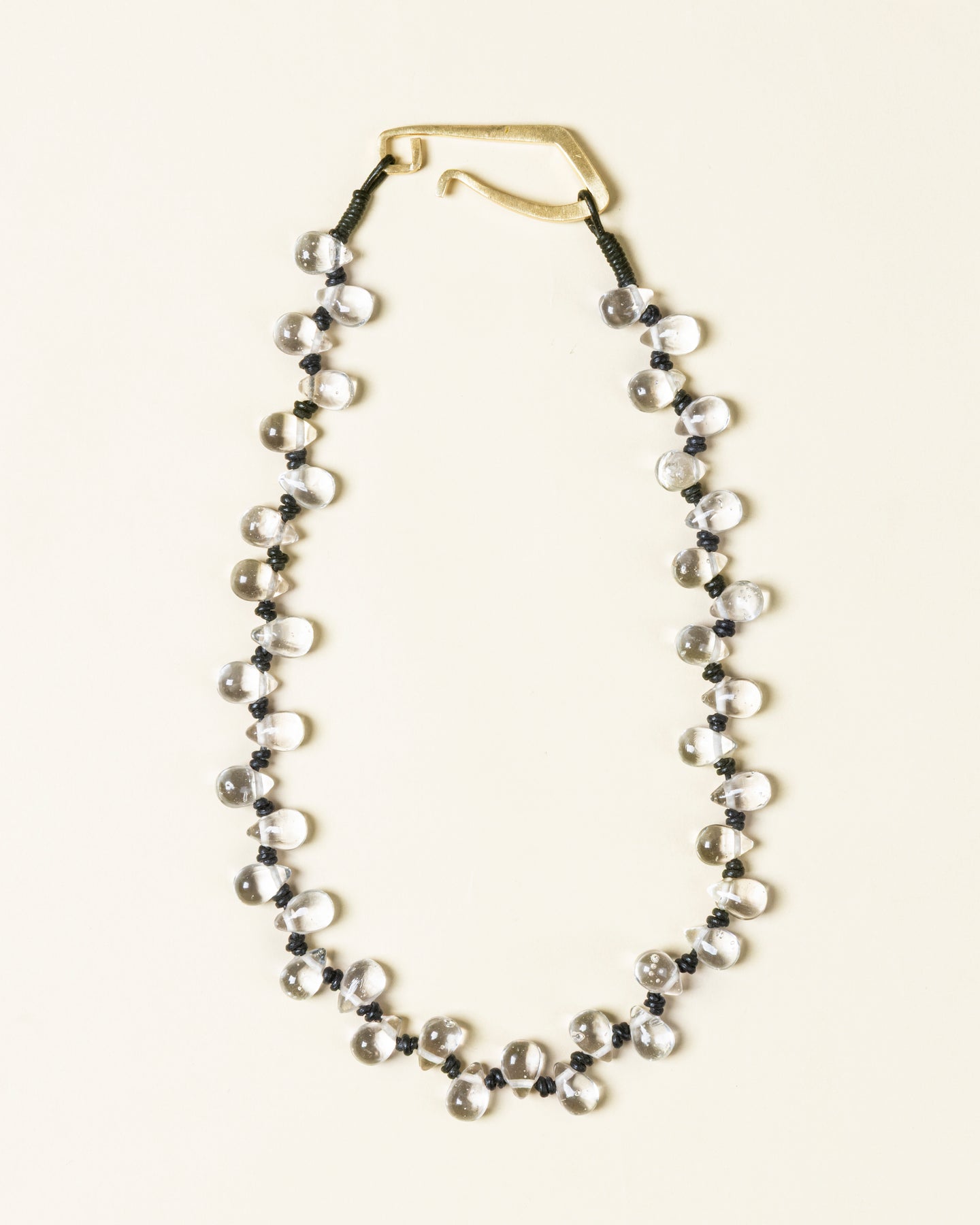 Brass & Glass Necklace with Yellow finish & leather cord.